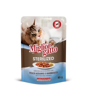פאוץ' לחתול מסורס,Migliorgatto, נתחים בטעם דג ושרימפס 85 גר'